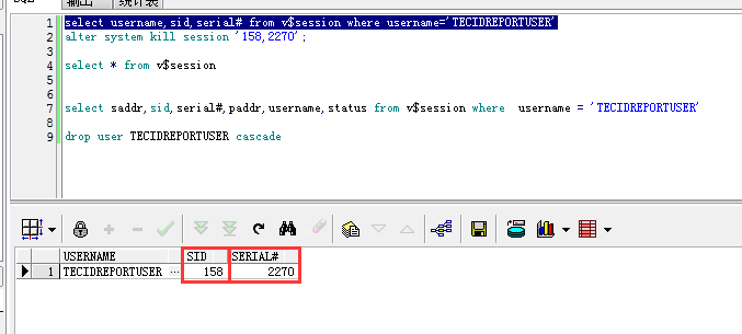 Oracle删除用户时候报错ORA-01940无法删除当前已连接用户 发表于 2019-10-16 | 更新于 2019-11-02 | 分类于 数据库 字数统计 73 | 阅读时长 1 1、根据用户名查询v$session表1select username,sid,serial# from v$session where username='TECIDREPORTUSER'; 阅读全文 »